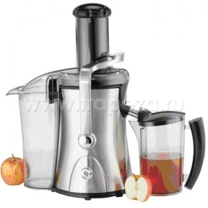 Соковыжималка электрическая, центробежная, настольная предназначена для всех видов фруктов и овощей, оснащена плавным запуском асинхронного двигателя, защитой от перегрева, 2 скоростями (6500 и 13000об/мин) для мягких и твёрдых плодов, защитой от случайного включения. Размер горловины - 84мм. Диаметр загрузочного желоба позволяет загружать продукты целиком, не разрезая их на части, что способствует получению большего количества сока за меньшее время. Стальные ножи имеют нитрид-титановое покрытие, предотвращающее коррозию. Мелкоячеистый фильтр с лазерной перфорацией обеспечивает непревзойденную степень фильтрации: сок получается чистым, а жмых сухим. Соковыжималка может работать в непрерывном режиме. В комплекте: стакан для сока объёмом 1л, съёмный контейнер для жмыха объёмом 3,5л. Длина сетевого шнура - 1050мм. Корпус изготовлен из нержавеющей стали.